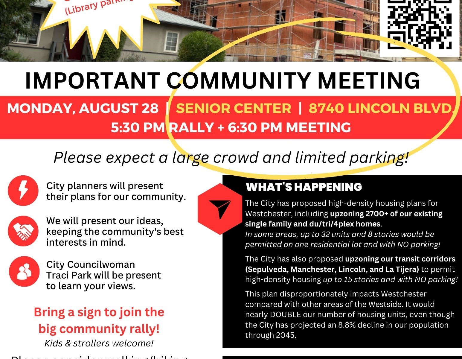 We organized and we were heard. We held a huge community meeting, we wrote our councilperson and we rallied our Neighborhood Council. We were very clear – Westchester Playa took a large number of units in the previous housing cycle, and we couldn’t take any more with our single-family home infrastructure and heavy traffic demands on our gateway boulevards to LAX.