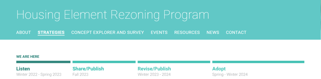 The process seems to be delayed, so I believe we might still have time to catch up. It’s Spring and I haven’t heard anything about Environmental Review for CHIP or the Housing Element. Please drop a comment if you know differently.