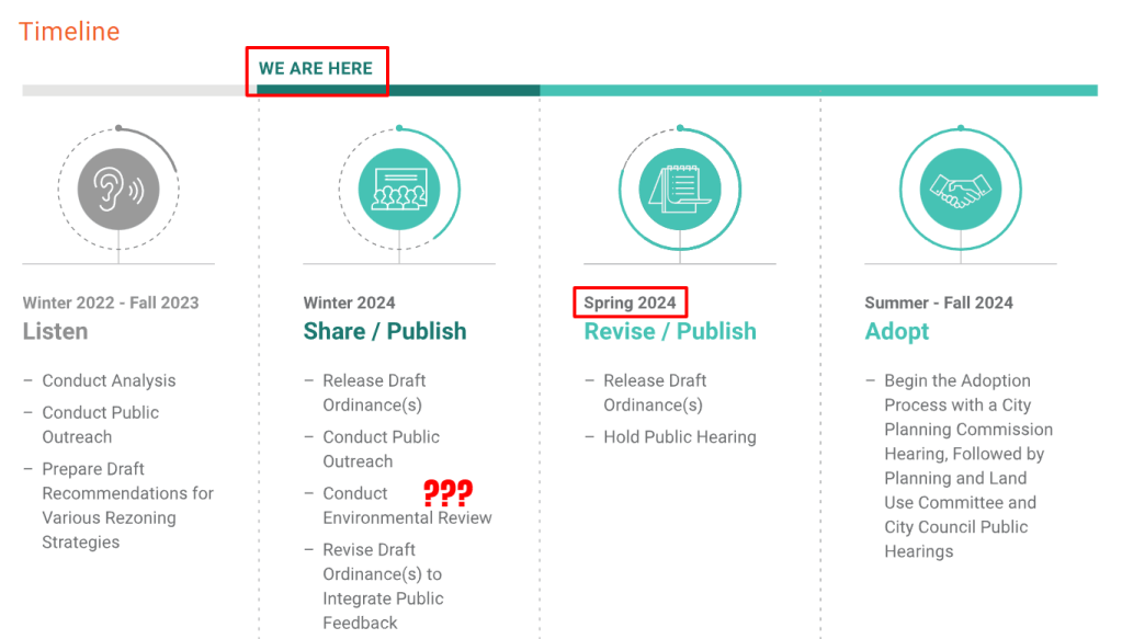 The update process started out normal enough in 2017, with lots of community engagement opportunities and a 1st draft that raised eyebrows with what felt at the time like extensive upzoning along Manchester. We would later learn just how bad the city wanted to upzone our plan area.