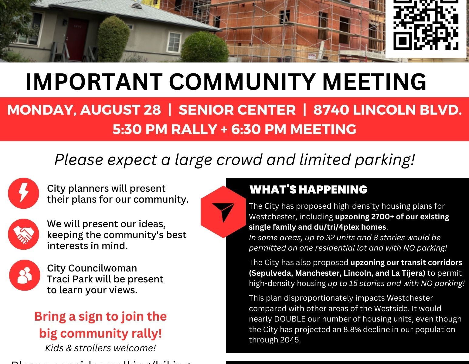 Please come out to the meeting so we can show our councilwoman we care about our community. Fill out the form below to tell us you’re coming and we’ll send you updates as they become available, including the location.